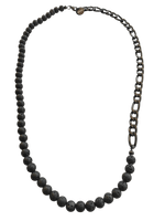 Este colgante está fabricado en acero inoxidable 316L, reconocido por su resistencia y propiedades antialérgicas, lo que garantiza comodidad y durabilidad. Cuenta con un diseño lacado combinado con piedras de lava de 4 mm, aportando un toque natural y sofisticado. Su tamaño de 50 cm lo hace ideal para un uso versátil tanto en ocasiones formales como casuales.
