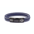 Wide blue brown leather bracelet