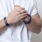 El anillo de acero negro con detalle de malla es una fusión de estilo y elegancia. La malla representa la complejidad y la versatilidad, mientras que el acabado en acero negro agrega un toque distintivo a tu look.