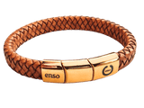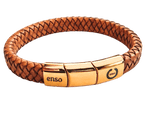 Brazalete cuero marron claro y acero baño oro