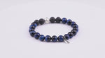 Pulsera elástica de lava volcánica natural y ojo de tigre azul