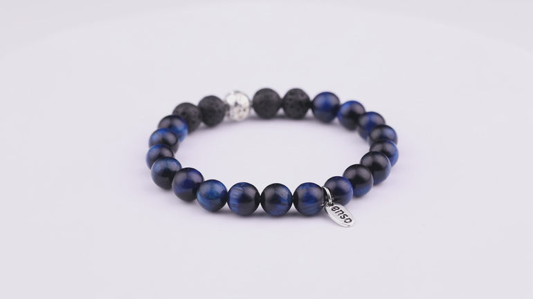 - Material: lava volcánica natural y ojo de tigre azul