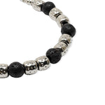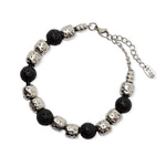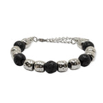 Pulsera de cuero y aleación de metales con baño de rodio con lava volcánica natural