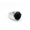 This elastic ring is adaptable to sizes 14-19 and is made with an anti-allergic metal alloy and a rhodium finish. Featuring natural olivine and lava chips , this ring is an elegant and durable option for your jewelry collection. Feel comfortable and safe when using it!